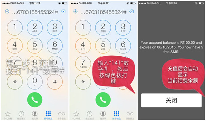 第二步:拨打电话充值(没有语音提示,拨打后大约2秒自动显示充值成功的界面,如图)