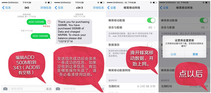 第三步:发信息开通套餐,如发“ADD空格500MB”到“343”