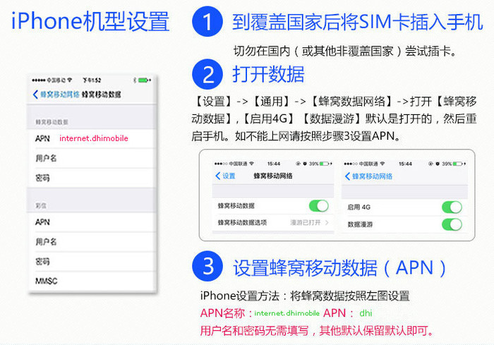 如遇手机开启蜂窝数据和漫游数据后仍旧不能上网,请按照以下参数设置。
