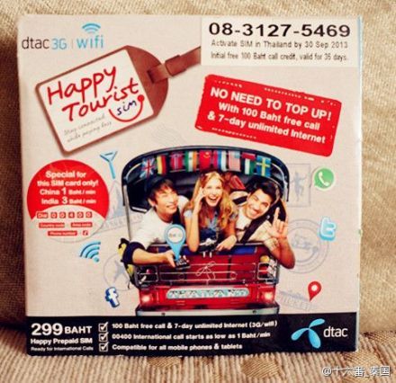 番友 @蚊子小路:在机场二楼随便问工作人员就可以找到happy卡的柜台,强烈推荐,我们买的是299B(60RMB)的套餐卡,含一个星期无限量3G上网,和80多分钟的市话,相当实用,这个是比较了turemove,1-2call,听取了ABC TOUR的TATA诚恳的建议,毅然决然的选择了happy,比turemove要贵些,但信号要好很多