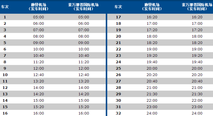 始发车地点:廊曼机场第一航站楼一层“素万那普国际机场-廊曼机场专线大巴站 ”