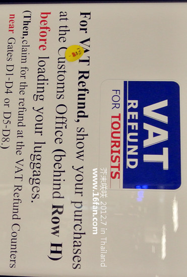 退税的大致流程:商场开好P.1.1.0单子——机场4楼VAT Refund处盖章——过安检后在VAT Refund处凭单子领钱(手续费100B)。机场盖章和领钱的地方请看机场标识,非常清楚。