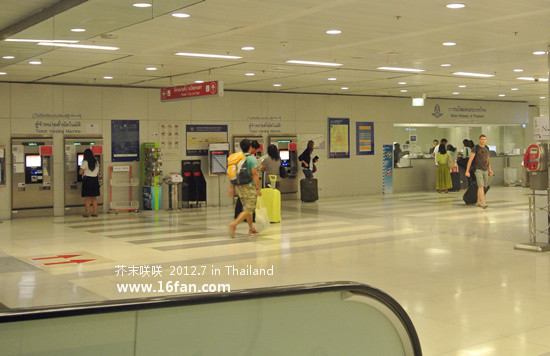 机场快线买票的地方(泰国轨道交通,就是说机场快线,地铁,天铁都是没人售票的,之给换零钱,不卖票,票得自己在自助机子上买),照片右边是换零钱的小窗口,告诉他你到哪一站,会给你换相应的硬币。