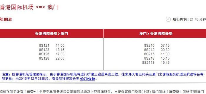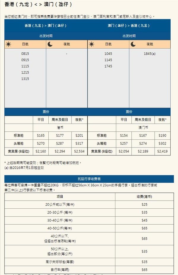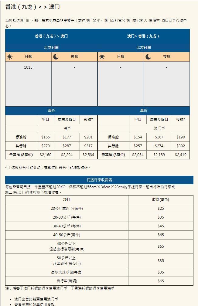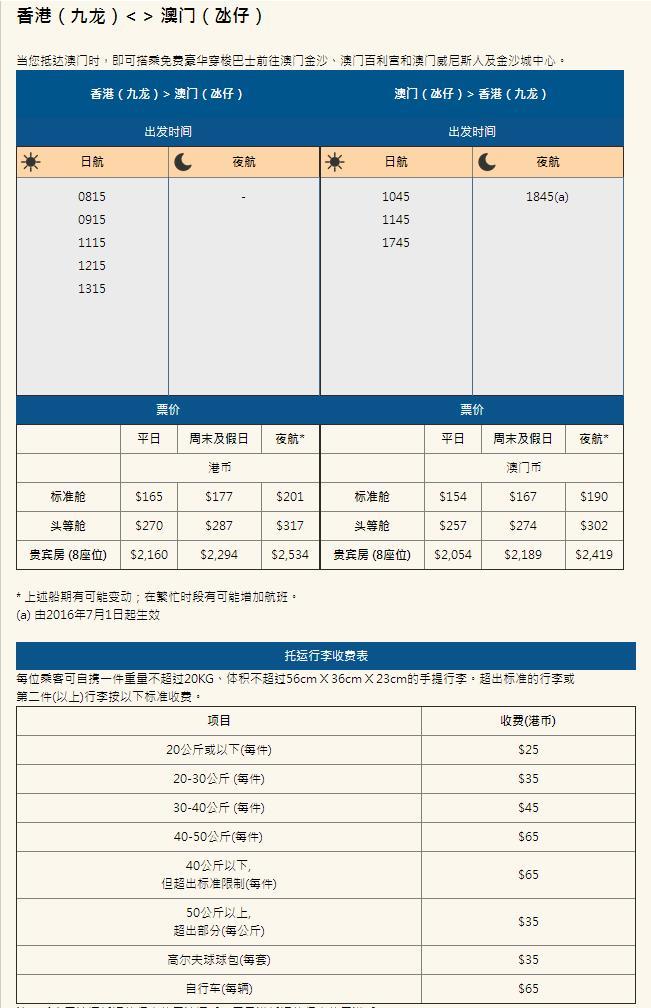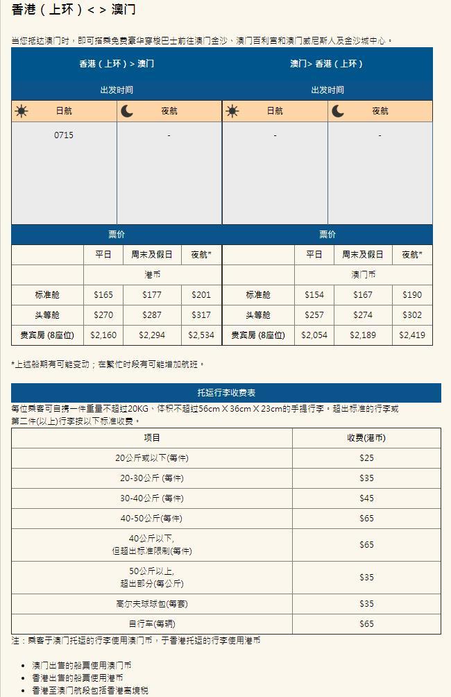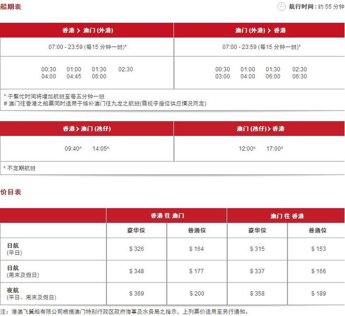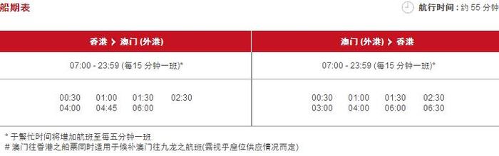 澳门在外港客运码头上船,也可以在 氹仔临时客运码头(金光飞航的船)这两个码头都有去香港的船。外港客运码头和氹仔临时客运码头,到港澳码头的一般一刻钟一个航班,而到中港城的一般半小时一个航班。