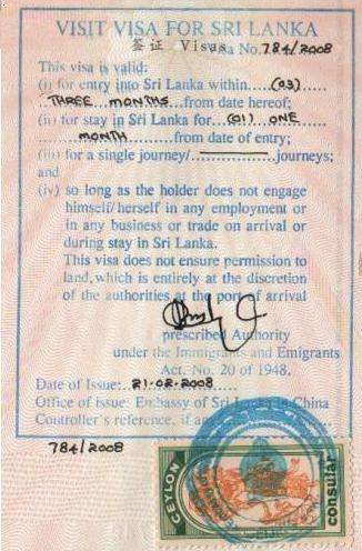 申请工作签证、长期签证,需带斯里兰卡移民局的批件到使馆办理。外交护照、公务护照、因公普通护照需要到使馆做签证。