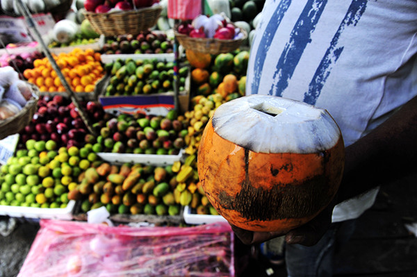 一般就随意放在路边小店的地上,看中哪颗就让老板给你砍一棵下来,刷刷几刀就切出了一个小口,高级点的地方给你个习惯,一般就是捧着往嘴里灌。很甜,淡淡得椰香!超解渴。据说斯里兰卡的当地人会在早上喝这个,能够整天充满活力。