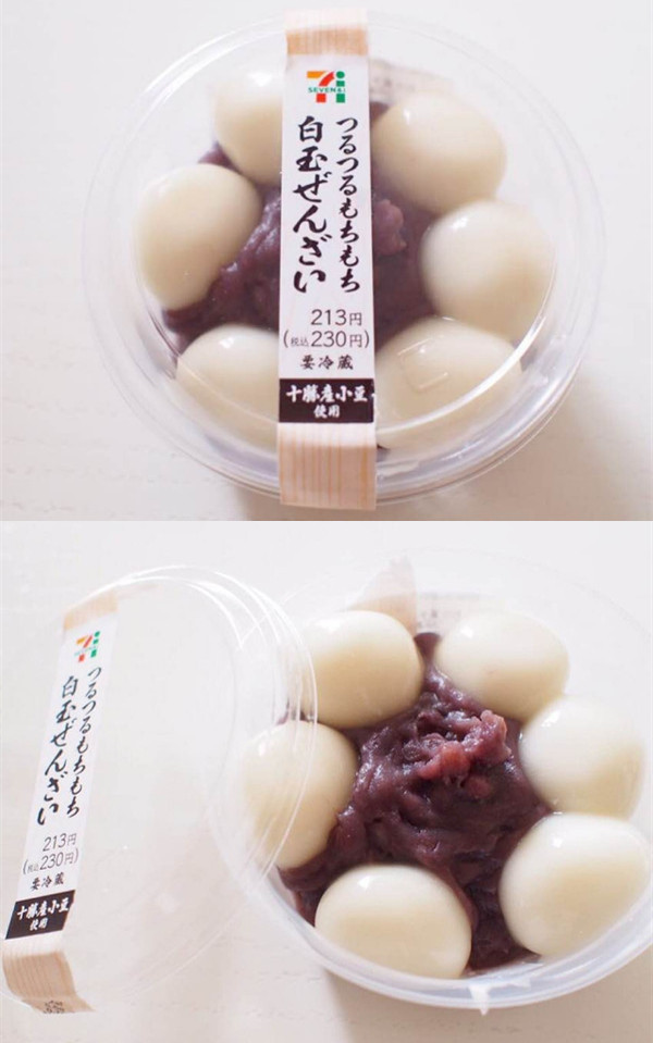 里面的豆沙不是泥状而是颗粒感十足的类型。且红豆用的是最有名的北海道十勝产的精选红豆,做出来的豆沙豆味十足,甜度适中,非常好吃。红豆上面的白玉其实就是白年糕,像国内不带馅的白汤圆,黏黏的软软的滑滑的。含税230日元(约12元)。