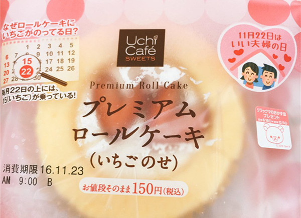 罗森人气甜点!外层裹上海绵蛋糕,中间填满香滑忌廉,采用北海道产的小麦,口感软绵。每个月的22日,中间还会放入半颗草莓。