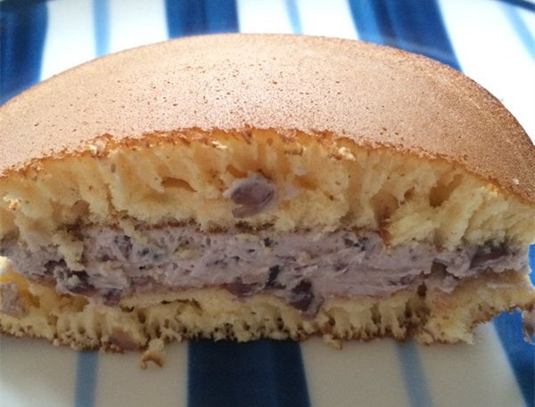一般的铜锣烧都是夹着豆沙馅,此铜锣烧夹着的却是小仓奶油以及北海道产的红豆,口感更加柔软。