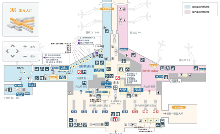 营业时间:6:30-21:30(3层 出发大厅)、7:00-22:00(2层 到达大厅)
