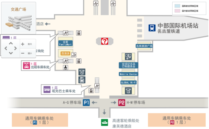 名古屋国际机场只有一栋楼。主要由交通广场和第一层(迎宾广场组成)、第二层(到达大厅)、第三层(出发大厅)、第四层(蓝天城,购物和餐饮)。我们首先要了解机场布局,才不会迷路[表情]下面分别图解出来。