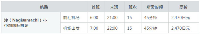- 机场出发:机场2:20发车,名古屋站西口3:15达到;机场5:40发车,名古屋站西口6:35到达