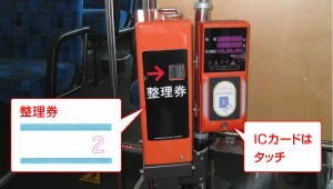 如果是下车时支付车费,请将车费和整理券一起放入投币付费的口内。(一些巴士可能需要给司机展示一下整理券的号码)