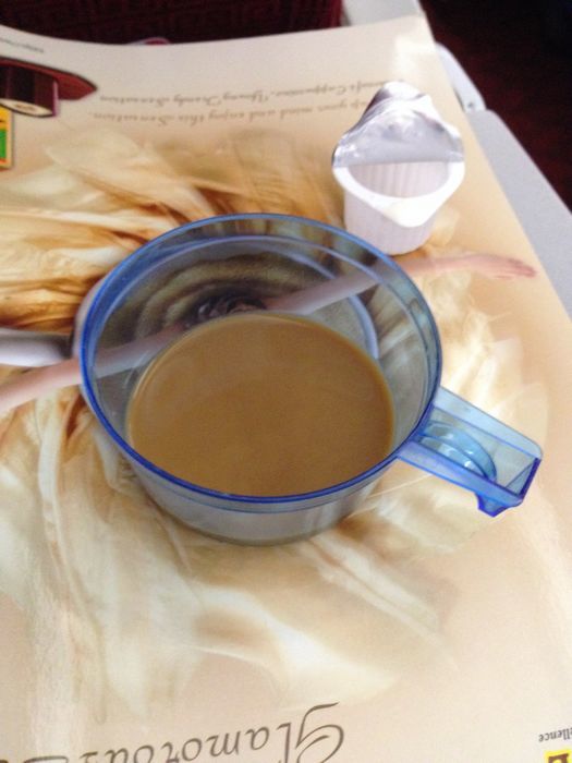 咖啡的杯子挺可爱的,可是也好小呀,还是国内的航空大方呀……