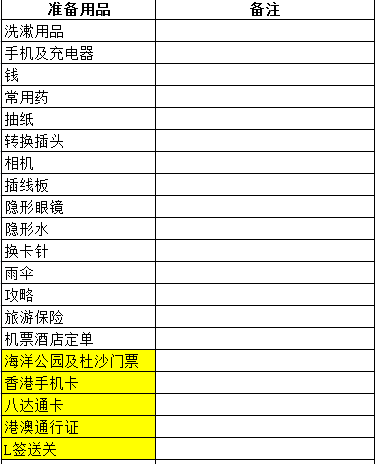 以上是我认为必须要准备的东西哦,大家可以直接复制打印。很方便(其实要去澳门的话,船票最好也在淘宝)