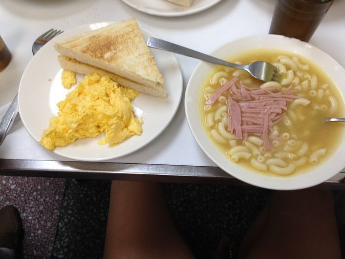 这家店好多人都在吃牛排,可是我们真的不想吃,看起来店里还黑黑的 破破的,可是一看菜单还真是不太便宜呢。都在50以上,这样看来真的很不直,后来才发现,原来香港吃个早饭都要共100元,才发现这个地真是个风水宝地呀,以至于后来又去吃了几次。哈哈。