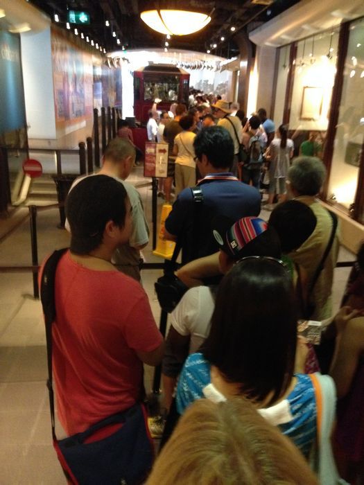 排队的人很多,基本去的时候都是按票上的时间走的,很少有坐不满,叫人替补上去的。