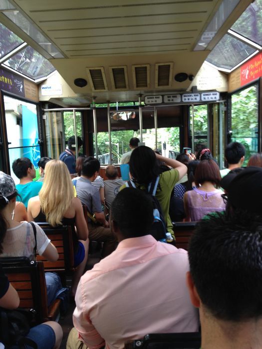 等了5分钟,上了车,一直坐到中环,还是很方便的,下山的风景不错,和缆车不一样的感觉呢,两边的树有时会挂到车上,发出霹雳啪啦的声。我们坐在上层的第一排,很舒服。