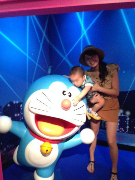 我去,我这宝看见机器猫就这样了,抱着不走……。无语,哈哈[表情]