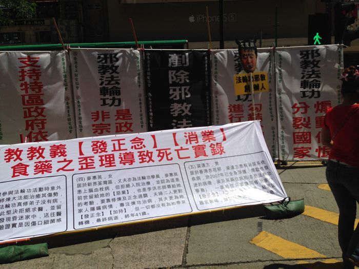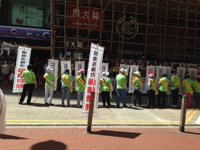 好像做的15路到维多利亚港什么的,忘了,很多印尼人吧,不知道什么地方,走了15分钟到了,人很多,人山人海,我妈说是不是什么事情呀,别打起来了。走着走着,看到了反对法轮功的人。