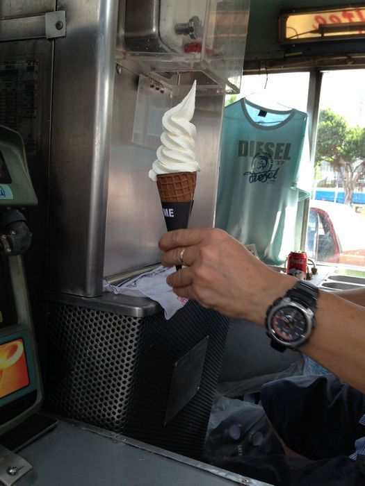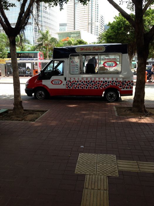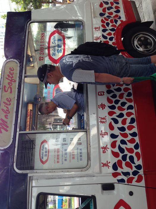 这个应该是河豚吧,挺好玩的,不过也不好带回家,所以没有 下午我们正好又赶上了快船2点多的船,到香港码头时看到大家说的冰淇淋的车哦,买了3个,9元一个,很好吃,奶味很重,很滑。