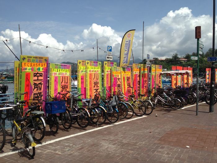 岛上没有汽车,大多是自行车,也有租车的,我们想租个三轮车30元一天,可是租车老太太说带人只能推着,不能骑,晕,那我租做什么,还不如推着宝宝呢,果断没有租……