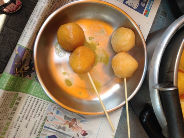 太晚了,也没什么心情去远的地方,楼下左拐随便找了点吃的,看到大家推荐的鸡蛋仔,也没有吃。因为人很多