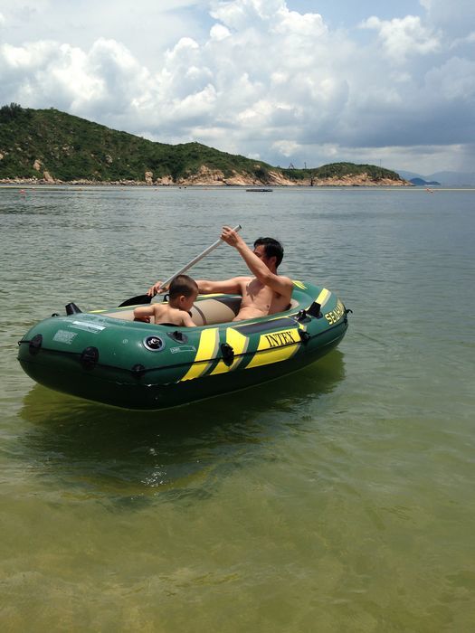 圈是10-30一天,看大小的,我们这个船是100一天。租时,他会叫你好好检查一下,有没有破的地方,不然回来才发现破的话就要赔钱了,押金是300元。我们的船玩了一会就累到不行了,不会划,老在打转。我妈说要不我们和他说给免费换2个圈吧。说真的,我不太好意思呢,呵呵,可是还是和我妈去了,老板人很NICE。二话没说就给换了2个圈,还把租船的押金给我们了,真好呀。估计是想着我们也用不了多久。哈……他们都带了泳衣,就我没带,我说不下水,可是去了后,心又痒痒的,最后搞的裤子全湿了,上岸又买的衣服换上了,不然这湿湿嗒嗒的真是不太舒服呀。