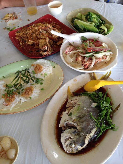 还在没有目的的找吃的,本来想去苏记的,可是上岛后也没看到,就算了吧。不知道怎么的,又走回码头了,于是又往右走的,看到一个大的海鲜市场。最后就找了个环境不错的大排档吃的。
