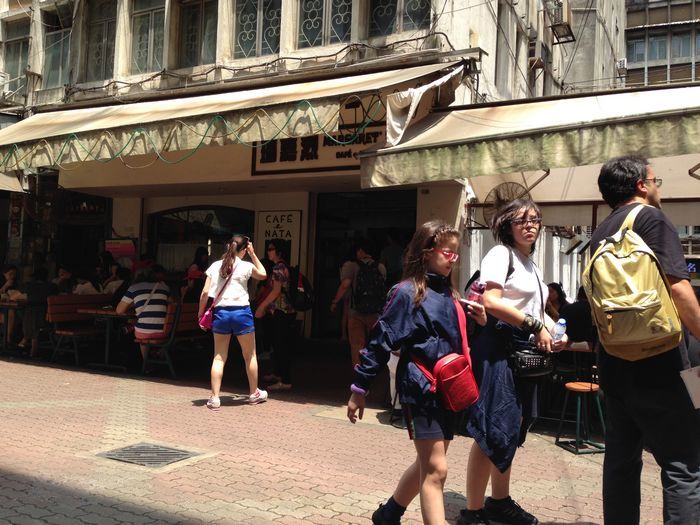 其实没有多难找,看到新普京后就向有中国银行的一边走去,看到这个路牌就到对了,延着这路一直走。过这个马路时,可以看到一个牌子,就是大家喜欢的马格烈蛋塔了,中午吃饭了,也没有食欲了。走进这个巷子,可以看到店面。