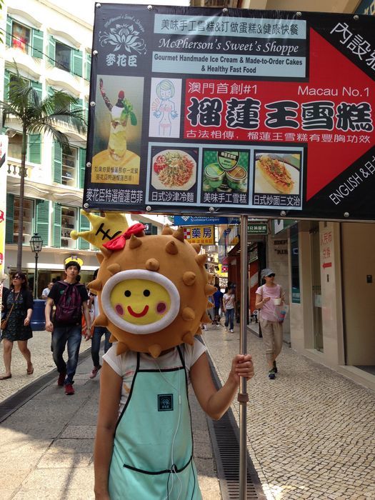 这个榴莲挺可爱的,这条街真是像大家说能吃饱呀,全是买吃的的,各种试吃,你要不好意思吃,店家还一定要叫你尝尝,不买也没有关系。