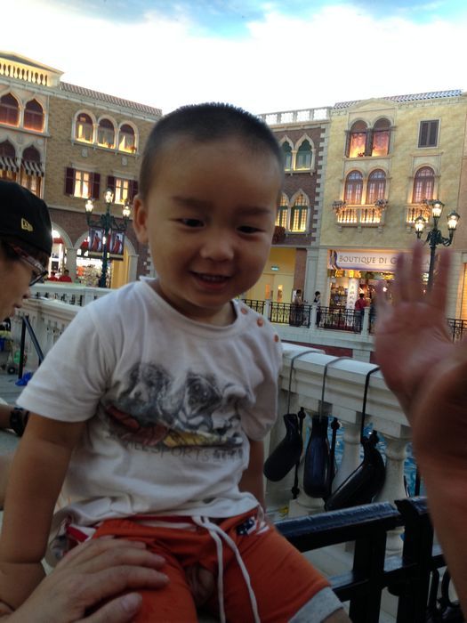 运气好,在永利门口休息了一下,音乐喷泉居然开了,很好看,可能是正点都会放一下吧,宝宝在他家水池边玩的不舍得走。上了永利的车就睡着了。