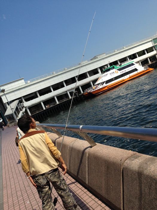 码头边还看到有人在海钓呢。