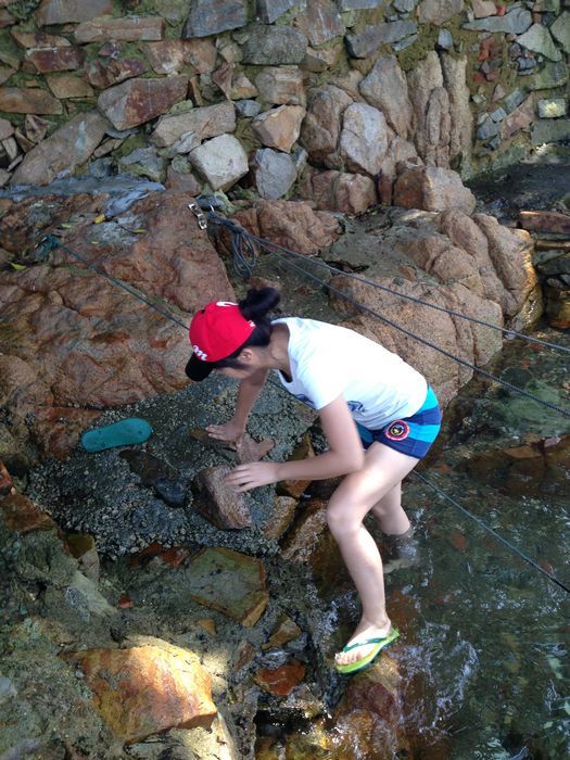 这里的风景与长洲不太一样,要更显得商业一点,街上除了大量的海鲜酒店还有很多租房的,海的样子也不一样,这里的海边有很多大的礁石,我们领略到另一种风情。