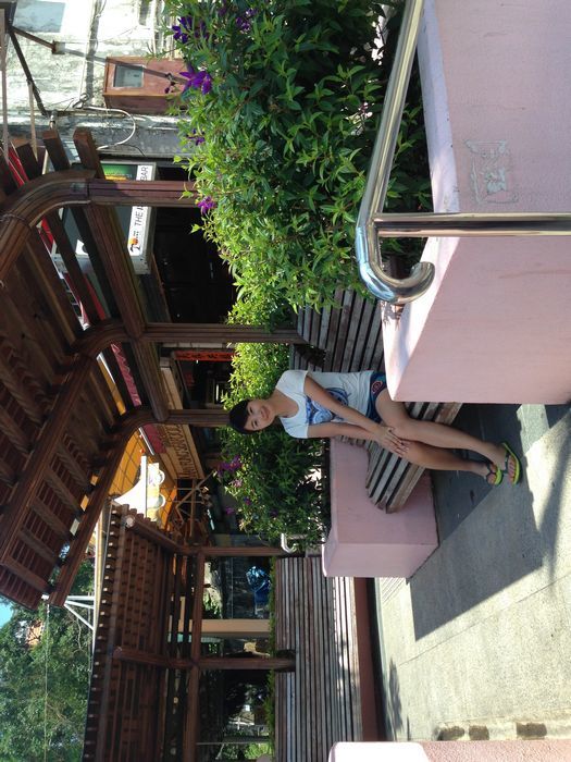 忘了在几楼走出来了,出来后对面是个商场一样的地方,没有进去。向右边走去公交车站准备下山了,看到了太平山餐厅 以及这个凳子,我认为很适合拍照。