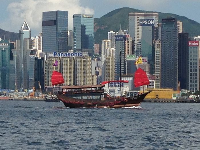 我们照完相后,原路返回的 下午回来的早,坐天星小轮时看到一个这样的船,有点穿越了。呵呵