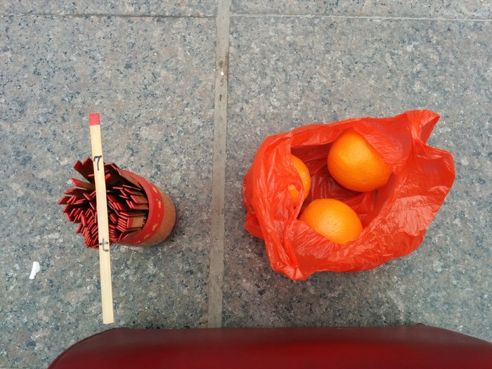 因为人特多,而且好多超级虔诚的信徒,一跪就是半个小时一个小时的,等个垫子我不容易哇!最后帮家人都抽了签,不过回来后有别的事情这些签文我也没到网上去查,等会有时间要去查一查!另外听人说要有东西供奉黄大仙才灵验,这不,菜场买来的橙子起作用了!等会供奉完了回去就把你们吃掉!(ˉ﹃ˉ)