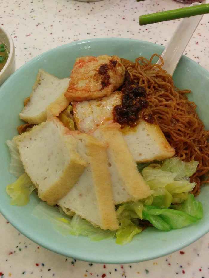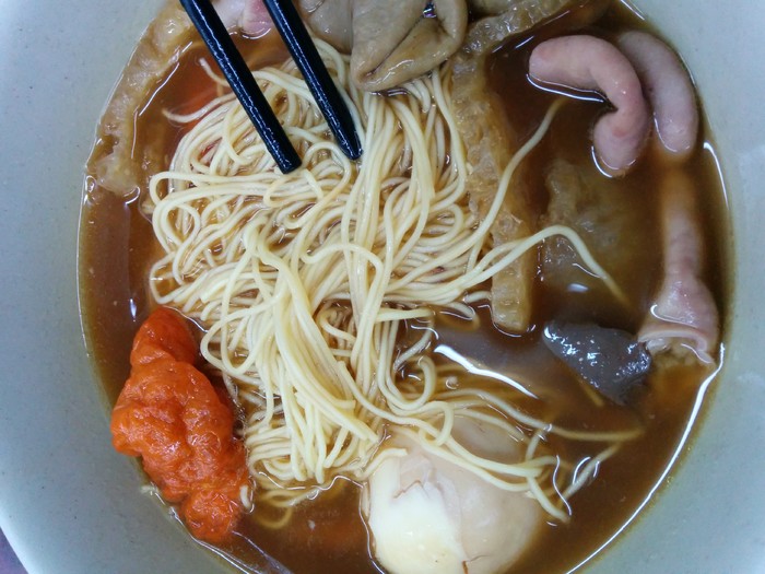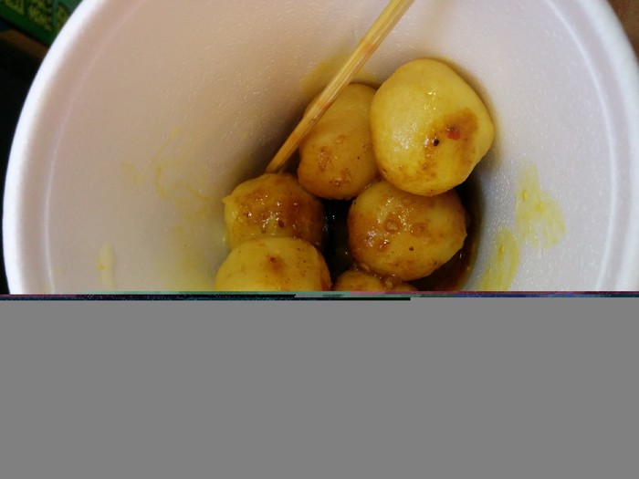 这家店的鱼蛋是很出名的,可惜我来的太晚了,七点半就打烊了,鱼蛋是没有了,我是最后一位顾客,我边吃,人家边收拾了,店员也会普通话,香港的面条都是差不多的,那个一块一块的不知道叫什么,有点咸,反正不是太和我胃口!下次早点来吃鱼蛋吧!