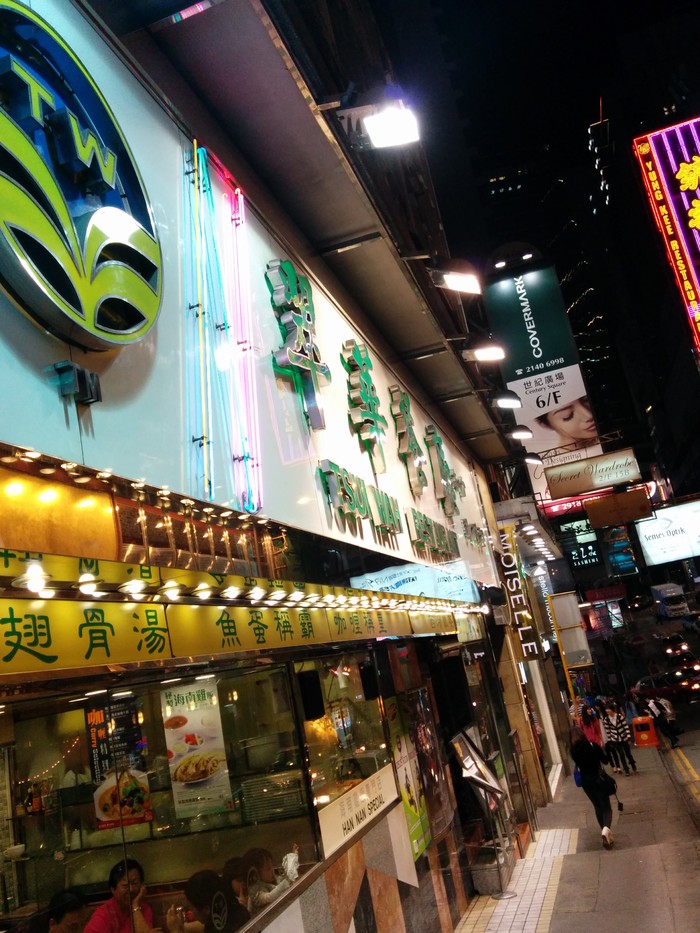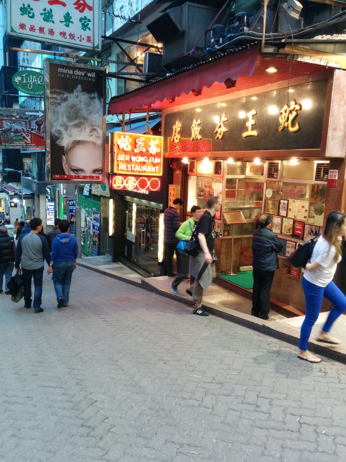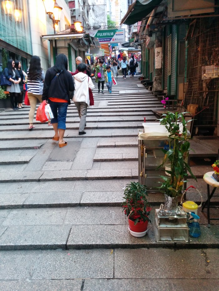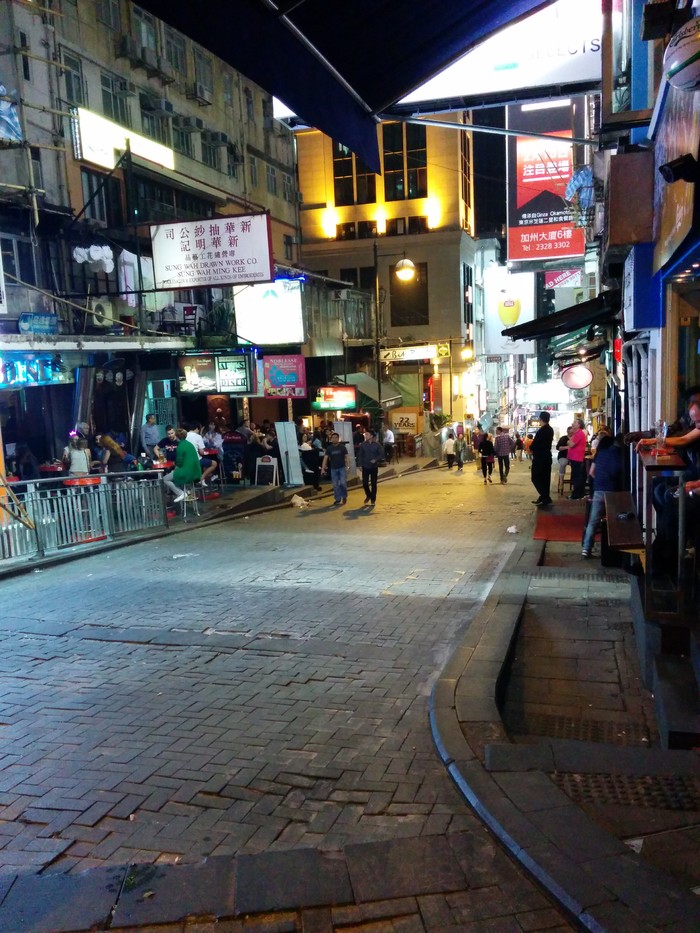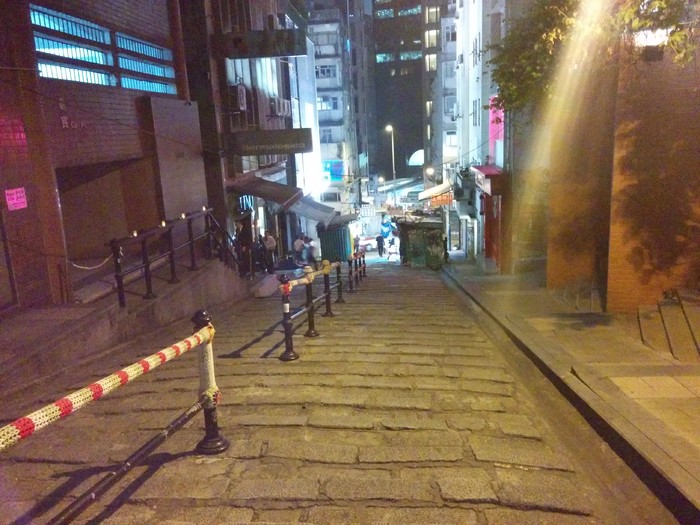 中场休息,回酒店check in 然后睡了几个小时,起来已经五点多了,又到晚饭时间,晚上的计划是去山顶看夜景!这条是不是传说中的石板街我不确定,不过人挺多的,走着挺有香港味道,TVB港剧里经常会出现的画面,我也算是个TVB剧迷,像这么经典的地方我怎能错过呢?