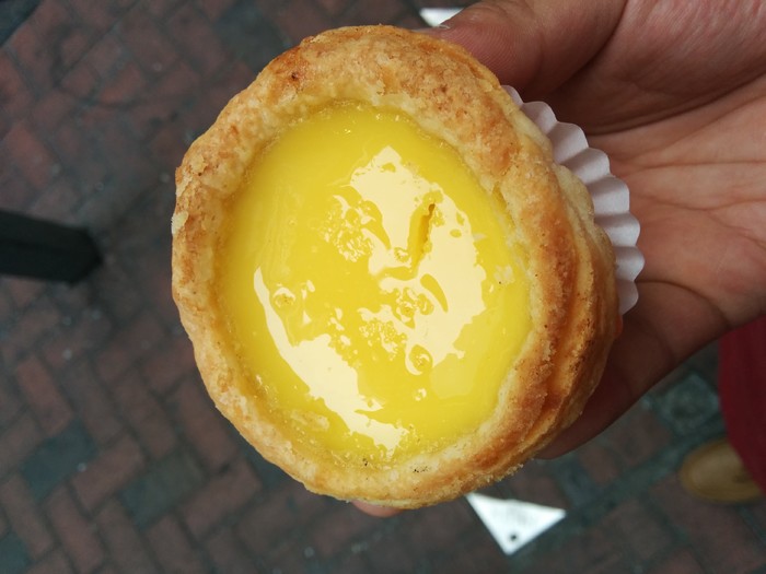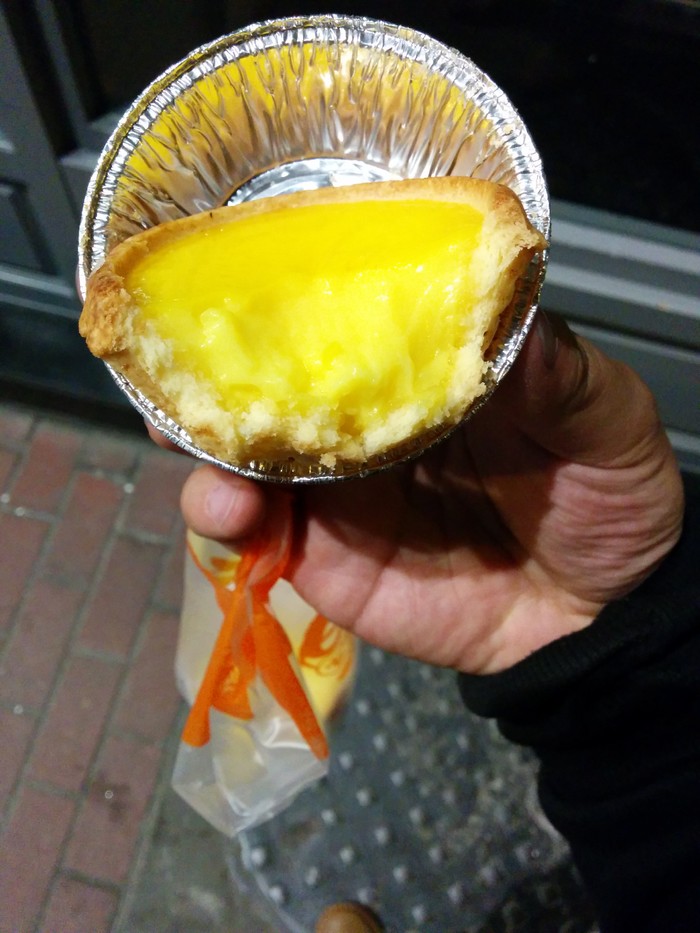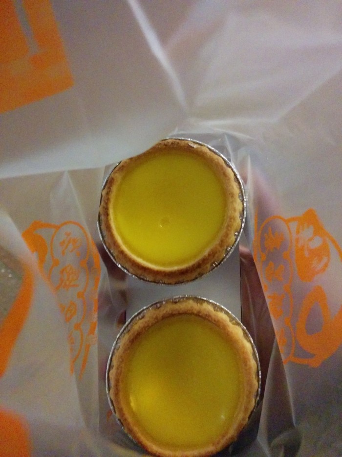 路边店买的,味道嘛,不怎么滴,不过便宜,另外比内地一些店铺做得蛋挞是要更好吃点!