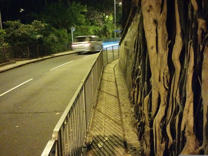 去都爹利街经过的一条路,人行道好窄,荒芜一人。。。