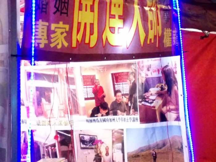 算命的,看介绍很牛逼,心说你这么牛逼的人在庙街干啥哇!哈哈!其实还有算命一条街,不过照片找不到了,so。。。。。。