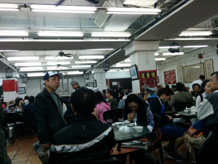 来莲香楼的基本都是上了年纪的港人,一般都是只叫一种或两种点心,然后喝茶看报纸,坐个半个小时一个小时就开溜了!
