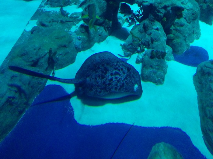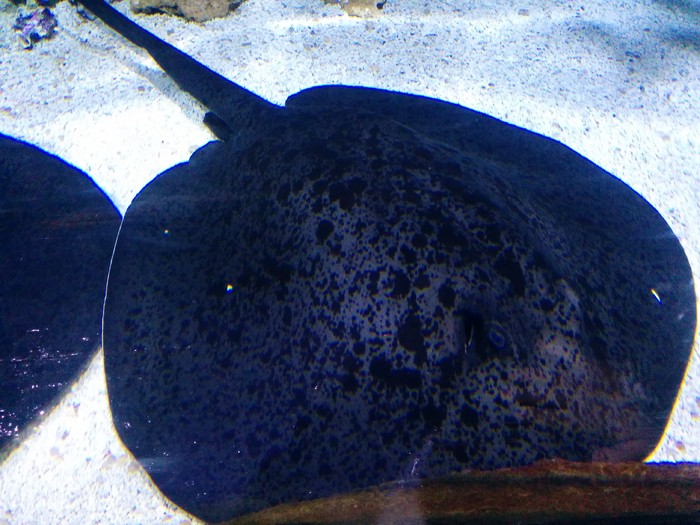 这家伙好懒,是放大版的皮鱼么?呵呵!其实它是鲨鱼的一种,叫魔鬼鱼,缩小版的就是老板鱼了,是可以吃的!呵呵!