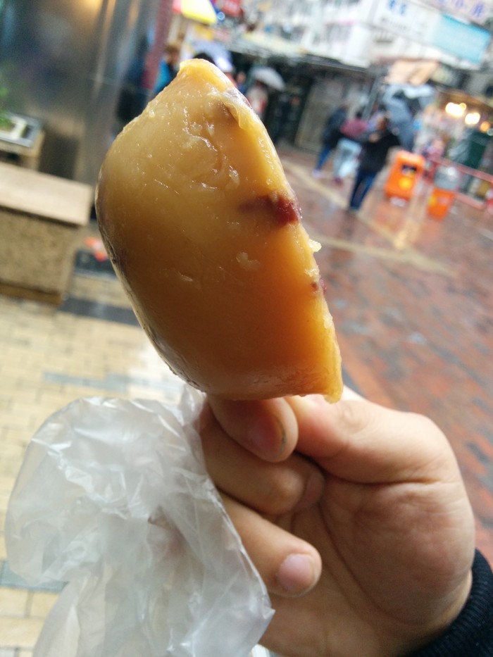 居然在地铁口发现了砵仔糕,真是意外呀,没来香港之前我还以为这玩意满街都是,来了才知道,这玩意真的不多见,味道一般般吧,比较干!不太喜欢这样的糕点,图个新鲜!我这个是黄糖的,还有一种是啥口味的?!忘记了!呵呵!