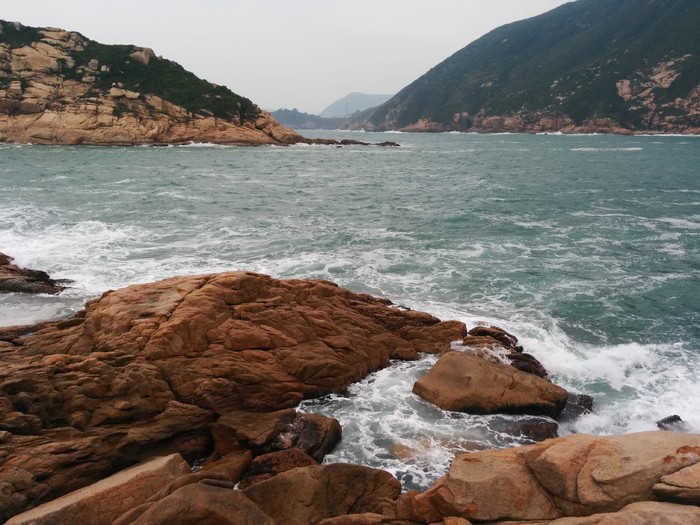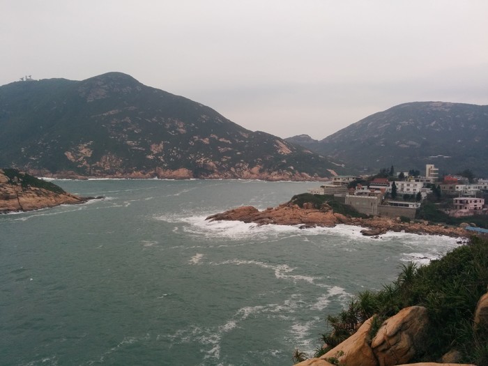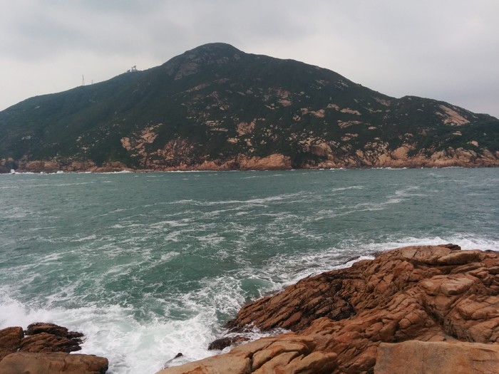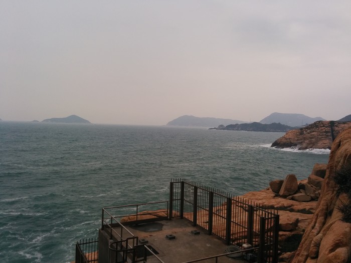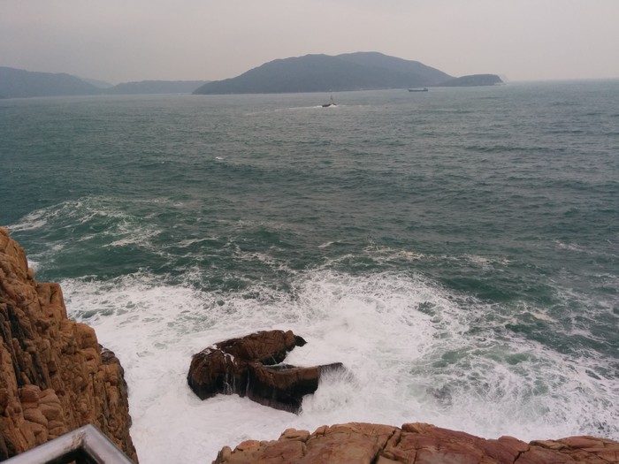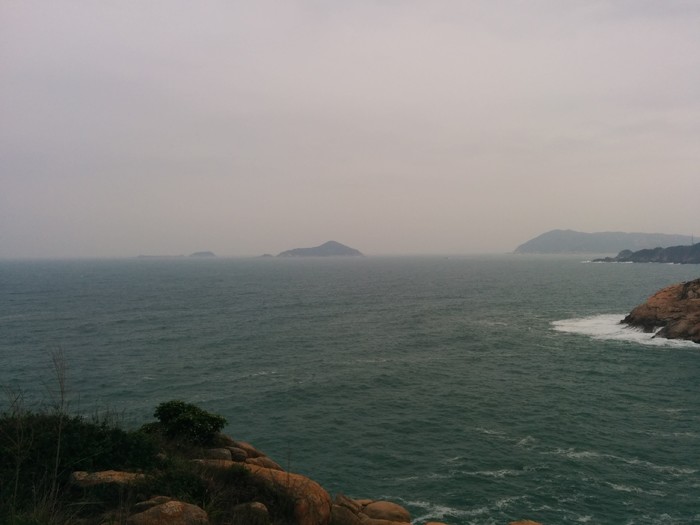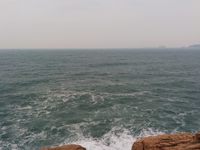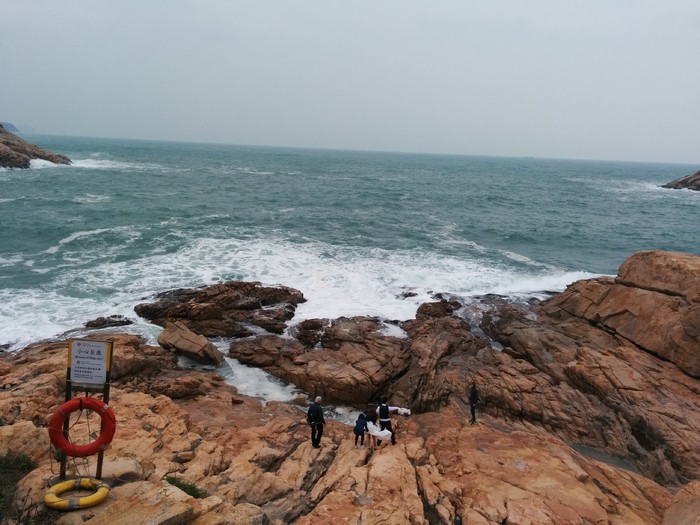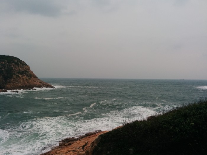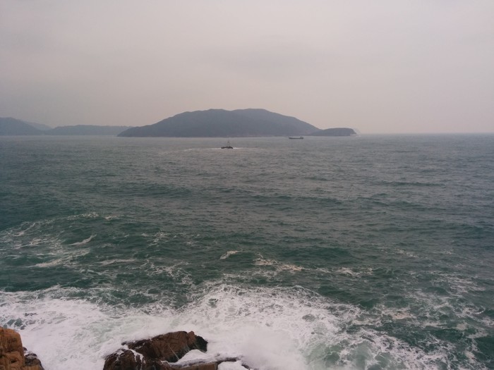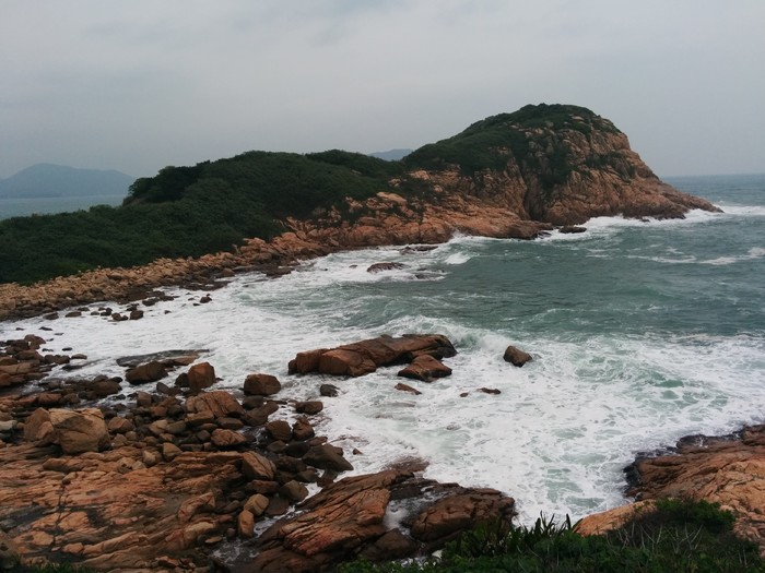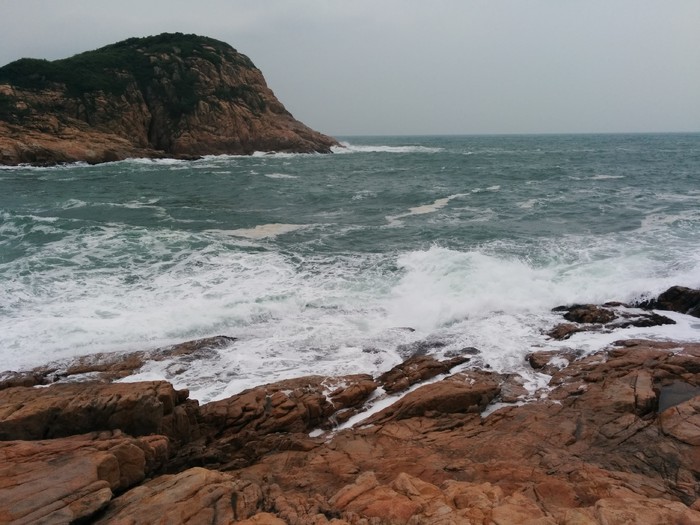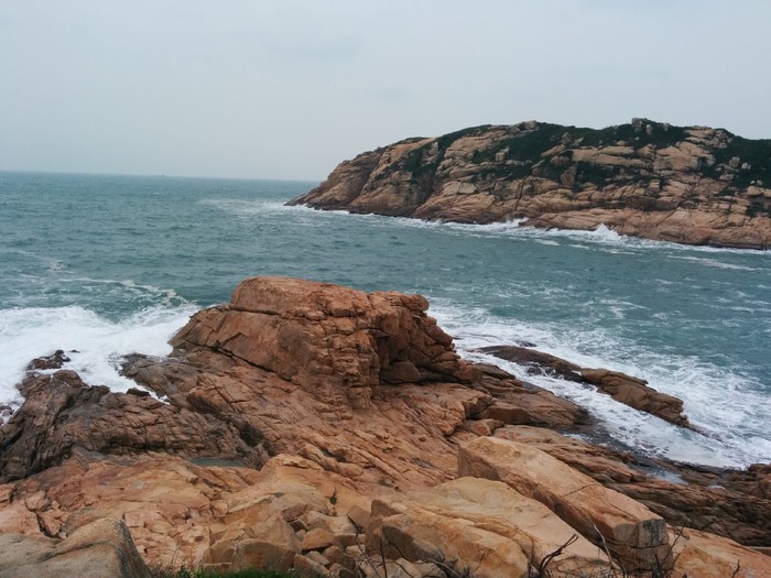 站在大头洲边缘,遥望东龙洲!海浪更加猛烈滴拍打礁石!海风阵阵,夹杂着星星点点的海水扑面而来!爽哇!