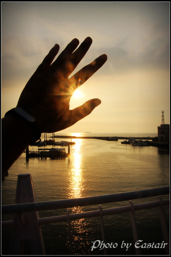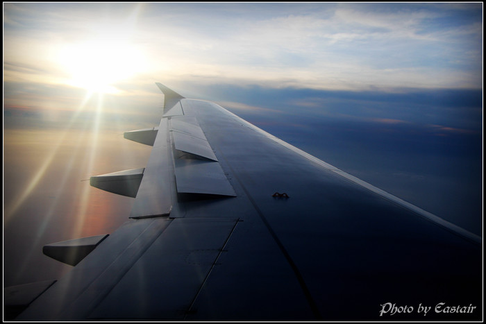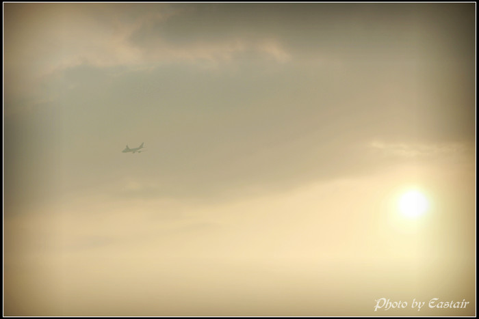 晚上6点半,飞机提前飞抵高雄上空,在空中看到了高雄的85大楼,有点兴奋的拿出相机,但这个时候,飞机来一个拐弯,好吧,我只能看见太阳了,就来这么一张吧~