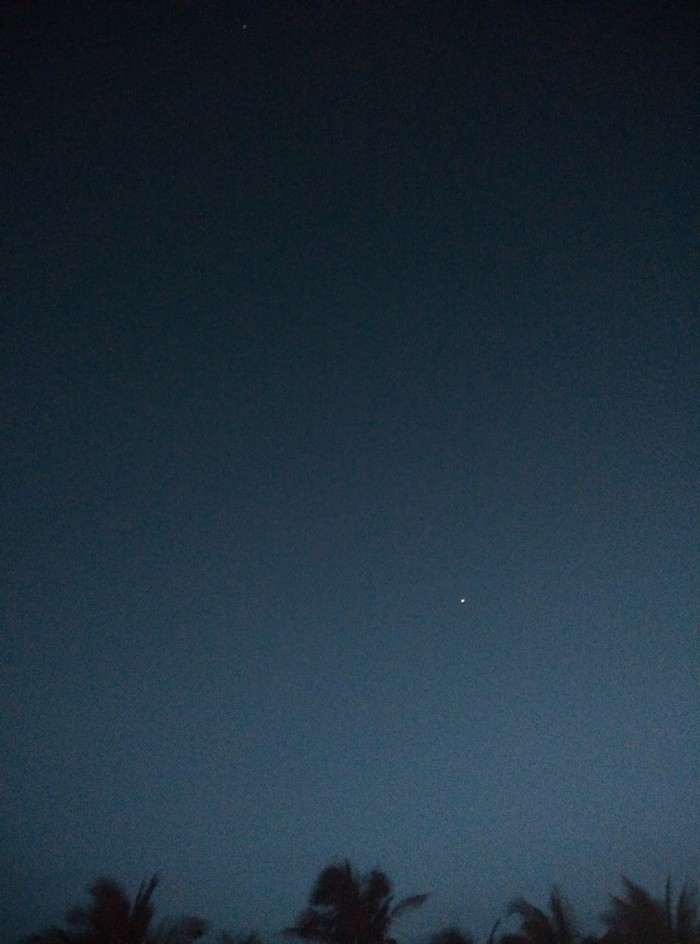 在聊天的过程中,天黑了,拿起手机对着天空拍一张,就能拍到星星,空气灰常好~