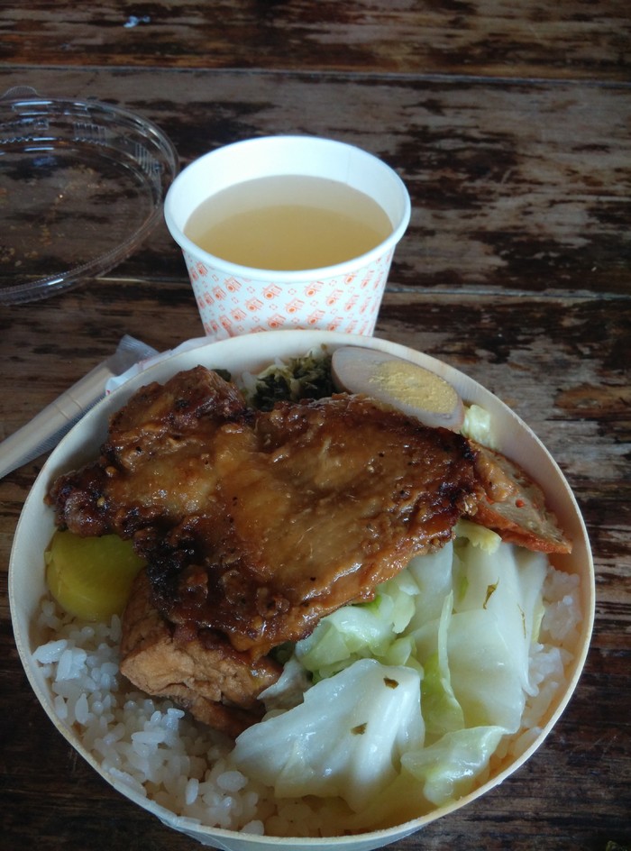 走山线,怎么可能少了池上饭包呢,这是我在台湾8天旅途中,吃的唯一一顿米饭,而且,只要90块新台币,也算是我在台湾吃过最实惠的一顿了,看,鸡腿多大个~