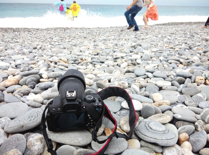 于是,我们每人捧着一杯柠檬汁,直奔七星潭,到达七星潭一下车,呀,没下雨就是爽,哈哈~七星潭虽然叫潭,其实就是大海,太平洋有木有~ 但这一片海滩很有特色,它不是一片沙滩,整个海滩都是鹅卵石,而且据说这里往海上走出没多远,就是一个100多米深的海沟,所以这里是不允许下海游泳的,这里的浪很美,但是有时候也很疯狂,俗称“疯狗浪”,据说每年都有人被疯狗浪卷走,所以,我还是与大海保持一点距离吧,谁让我还是一只旱鸭子呢~
